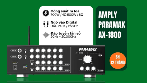 Một trong những thế mạnh lớn nhất của Paramax là các dòng amply công suất lớn. Những sản phẩm như Amply Paramax AX-1800 700W hay các model khác có công suất mạnh mẽ 460W trở lên, dễ dàng phối ghép với nhiều dòng loa Paramax và các loa khác trên thị trường, đảm bảo âm thanh luôn căng đầy, mạnh mẽ ngay cả trong không gian lớn.