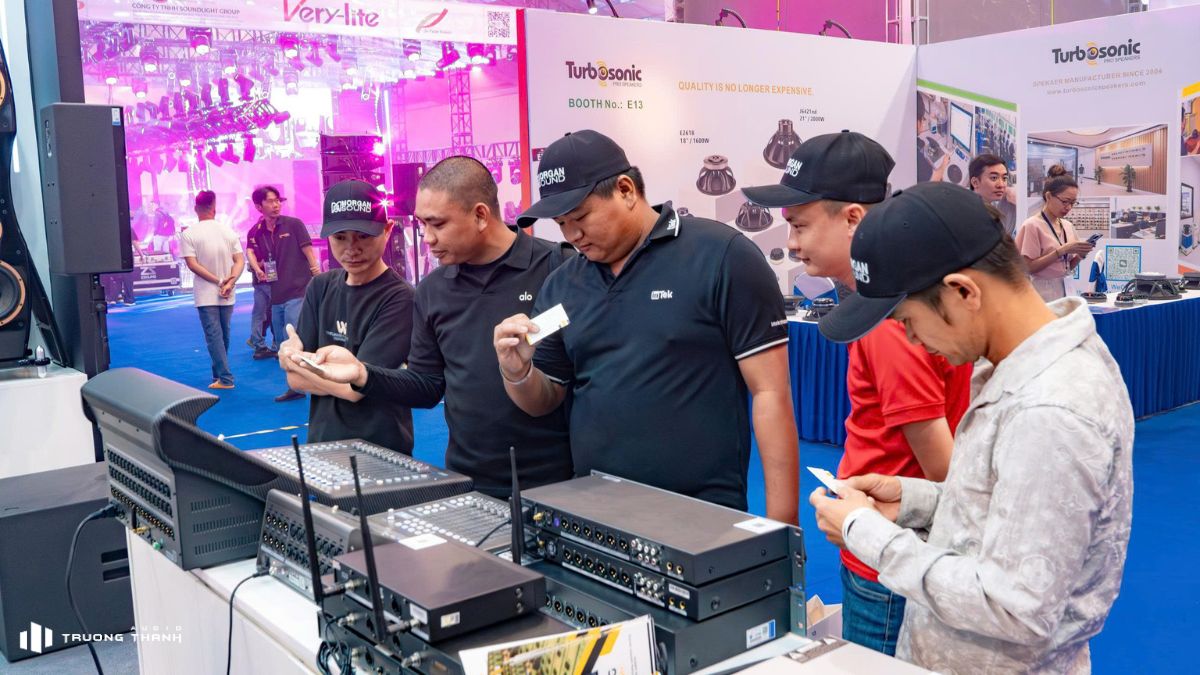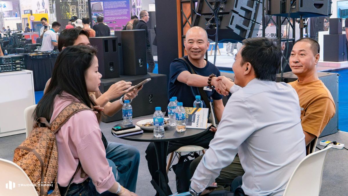Chỉ trong ngày đầu khai mạc Triển lãm Prosound Vietnam 2026, khu trưng bày các thiết bị âm thanh của Trường Thành Audio đã nhanh chóng trở thành một trong những điểm dừng chân đông đúc nhất tại triển lãm. Điều này thể hiện sự quan tâm thực sự từ khách hàng, họ đến nghe thử, trải nghiệm và chúng tôi đã cùng nhau chia sẻ rất nhiều điều hay.