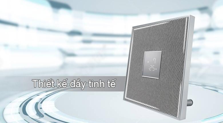 Loa bluetooth Yamaha IX-80 có vẻ ngoài hình vuông như một khung tranh với kích thước 302 x 302 x 65mm, chính giữa là một màn hình hiển thị có nhiệm vụ hiển thị giờ và các thông tin hoạt động của loa. Loa có thể treo tường hoặc đặt lên bàn, kệ, tủ với chân đế đi kèm.