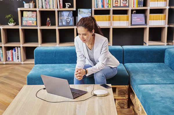 Pin có thể sạc lại được tích hợp cho phép di chuyển hoàn toàn trong tối đa 10 giờ. Đây là thiết bị lý tưởng cho không gian làm việc mở, phòng họp nhóm, văn phòng tại nhà và du lịch.