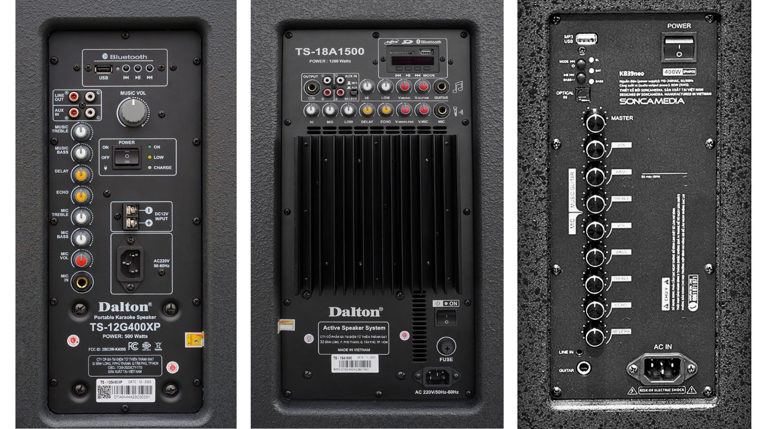 - Bảng điều khiển: Thường được trang bị ở bên hông loa hoặc sau loa, nó là một bảng có nút bấm, núm chỉnh cơ bản về âm lượng, bass, treble, echo và rất dễ sử dụng.