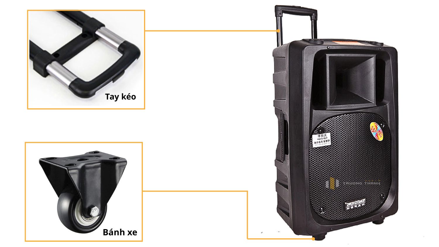 Hệ thống bánh xa và tay xách giúp người dùng thuận tiện di chuyển loa kẹo kéo