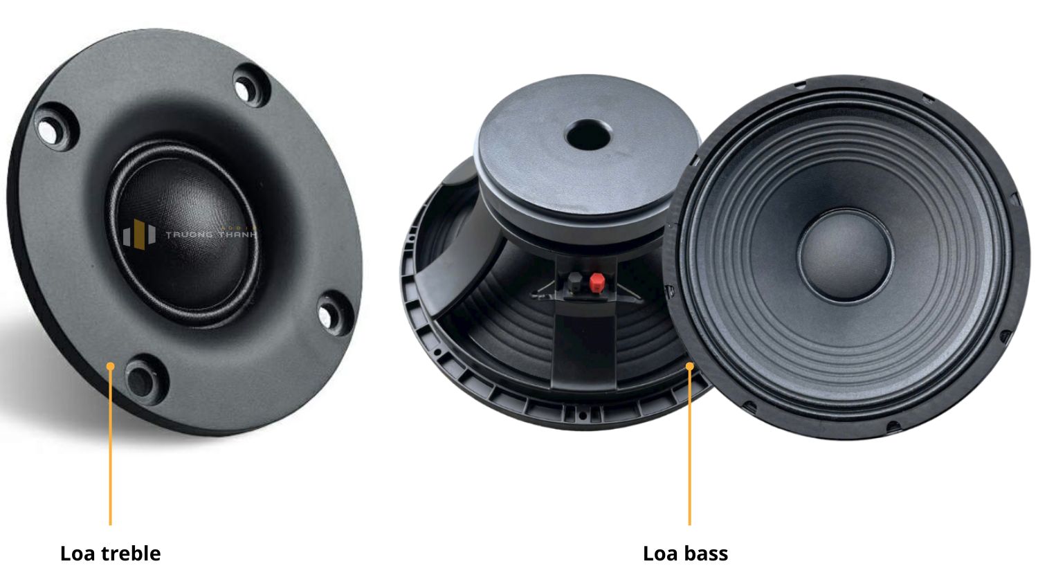 - Củ loa: Bao gồm loa bass (tạo âm trầm) và loa treble (tạo ra âm cao), giúp loa tái tạo âm thanh sống động.