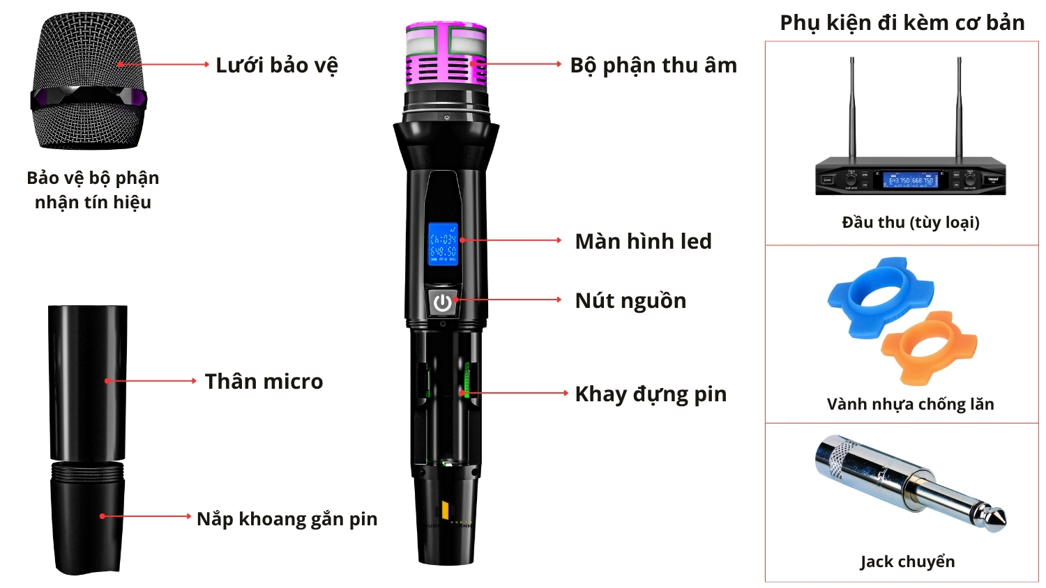 Cấu tạo bên ngoài và phụ kiện kèm theo của micro